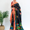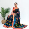 Each thread of this saree tells a story of craftsmanship and creativity, making it a cherished treasure for those who appreciate the artistry in every weave. Own a piece of this unique legacy and experience the luxury of the Black Rajkot Patola Saree, where tradition meets modernity with elegance.