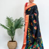 The intricate floral motifs, meticulously crafted in superb colors, make this saree a true work of art. It reflects the perfect fusion of heritage and innovation. Wearing our Black Rajkot Patola Saree is not just a fashion statement; it’s a celebration of the timeless beauty of Indian textiles and the artistry of Patola weaving.