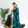 Elevate your style with our Black Rajkot Patola Saree, a captivating Half and Half design. Featuring intricate floral motifs on the upper part and charming small dots on the pleats, this saree effortlessly combines tradition and modernity. It’s a true work of art that reflects the rich heritage of Patola weaving. Make a statement with this masterpiece that exudes contemporary elegance.