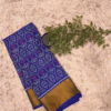 get yourself this beautiful blue patola saree, made from pure mulberry silk. comes with a beautiful plain blouse.
