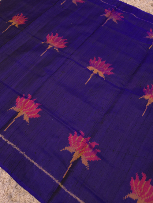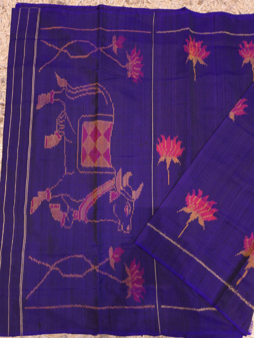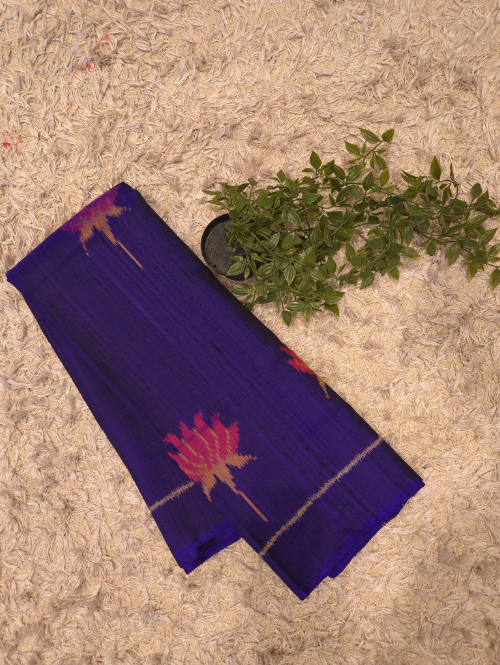 get yourself this beautiful blue raw silk patola saree, made from pure mulberry silk by raw silk. comes with a beautiful plain blouse.