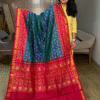 get yourself this beautiful Blue-Red patola saree, made from pure mulberry silk. comes with a beautiful plain blouse.