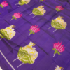 Celebrate heritage craftsmanship with this No Zari Pure Rajkot Patola Mulberry Silk Saree, a true reflection of timeless artistry. The rich brinjal-colored body is intricately woven with Pichhwai cow and lotus motifs, symbolizing spirituality, prosperity, and cultural traditions. Each motif is designed with precision, bringing life to the fabric through the intricate Patola weave.