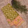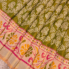 Celebrate the artistry of Patola weaving with this exquisite Rajkot Patola Saree by House of Kalakriti. Designed for those who appreciate fine craftsmanship, this saree features a deep olive green body that exudes luxury and grace. The off-white border enhances its elegance, while the multi-colored pallu showcases intricate weaves, adding a vibrant contrast that reflects the richness of tradition.