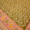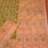Step into elegance with this Rajkot Patola Saree, crafted from luxurious 4-Ply Mulberry Silk. The deep olive green body is beautifully contrasted by an off-white border, while the vibrant multi-coloured pallu adds a striking touch. Meticulously designed with intricate embroidery, this saree embodies tradition and sophistication. Paired with a Nauratan Bhat blouse, it is a perfect choice for any grand occasion.