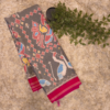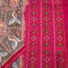 This single ikkat Patan Patola saree features a sophisticated grey body woven with intricate peacock and floral motifs, reflecting the elegance of traditional craftsmanship. The striking pink pallu is adorned with vibrant geometric and floral patterns, adding a bold contrast. The saree is framed with rich pink resham borders, enhancing its graceful appeal. Paired with a plain pink blouse, this timeless piece is perfect for festive and special occasions.
