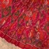 Dive into the world of vibrant heritage with our multicolored Patan Patola Single Ikkat Saree. Adorned with unique figure motifs including floral designs this saree celebrates tradition with every weave. Its red-maroon border and pallu, featuring classic selari and floral patterns, bring timeless elegance to the look. Paired with a plain red blouse, it’s perfect for festive occasions, weddings, or traditional gatherings. A rich blend of colors, culture, and craftsmanship.Make a bold yet graceful statement with this one-of-a-kind piece.