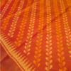 The saree’s monochrome orange tone enhances its graceful appeal, making it a versatile addition to any wardrobe. This vibrant yet refined color not only symbolizes festivity and prosperity but also radiates warmth and charm, making it an ideal choice for weddings, pujas, and cultural gatherings.