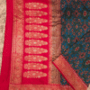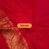 The Banarasi Patola Single Ikkat Pure Silk Saree is a mesmerizing fusion of two weaving traditions. Crafted from 8-ply mulberry silk yarn, it features a Navratan Bhat design all over. The Banarasi-woven border and pallu shine with gold zari on a rich red base. Paired with a plain red blouse with a zari border, this saree embodies timeless elegance and craftsmanship.
