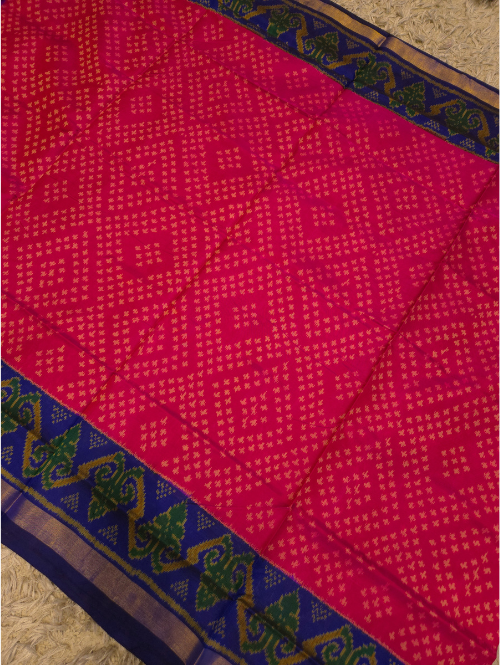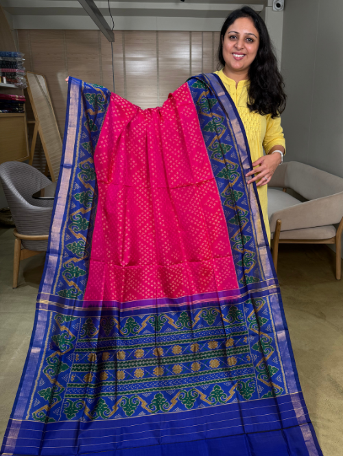 Pink-Blue Rajkot Patola Pure Silk Saree