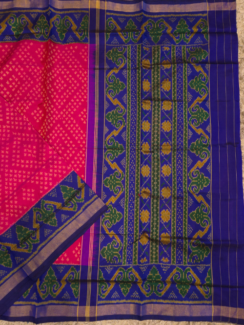 get yourself this beautiful pink-blue patola saree, made from pure mulberry silk. comes with a beautiful plain blouse.