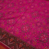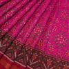 This Patan Patola single ikkat saree in a radiant rani color is a masterpiece of traditional craftsmanship. The body features an intricate Nauratan Bhat design, while the contrast red border and pallu showcase classic Patola patterns. Woven with exceptional skill, it is perfect for celebrating heritage in style. Comes with a plain red blouse piece to complete the look.