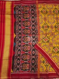 Mustard Yellow Twill Single Ikat Patola Pure Silk Saree