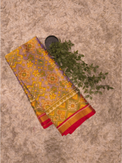 Multicolored Single Ikkat Pure Silk Patola Saree